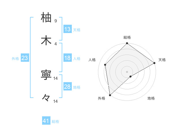 柚木 寧々さんの総格は41画の5点!