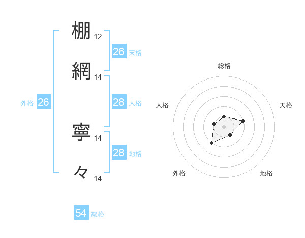 棚網 寧々さんの総格は54画の1点!