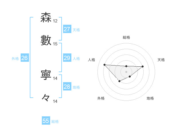 森數 寧々さんの総格は55画の1点!