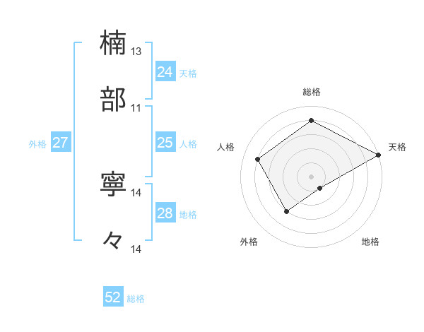 楠部 寧々さんを姓名の画数から五運を鑑定