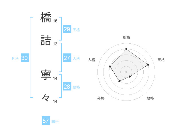 橋詰 寧々さんを姓名の画数から五運を鑑定