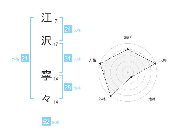 江沢 寧々さんの総格は52画の4点!