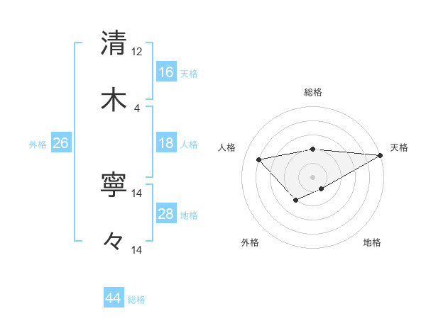清木 寧々さんの天格は16画の5点!