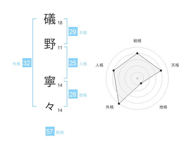 礒野 寧々さんの総格は57画の4点!