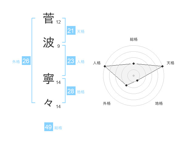 菅波 寧々さんの天格は21画の5点!