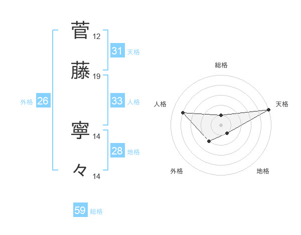 菅藤 寧々さんの天格は31画の5点!