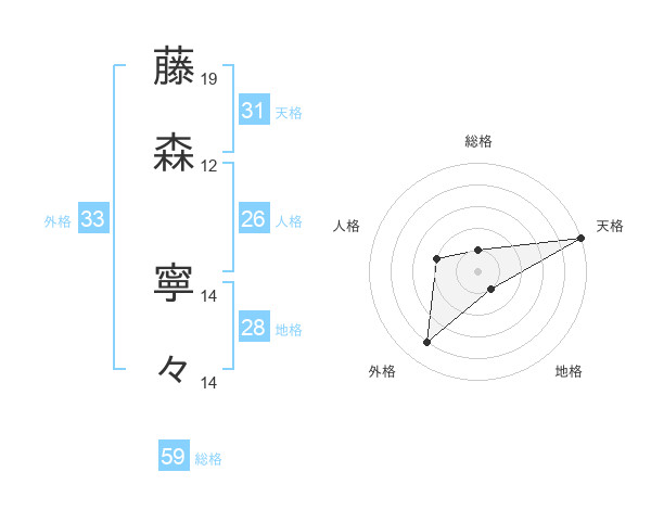 藤森 寧々さんの天格は31画の5点!