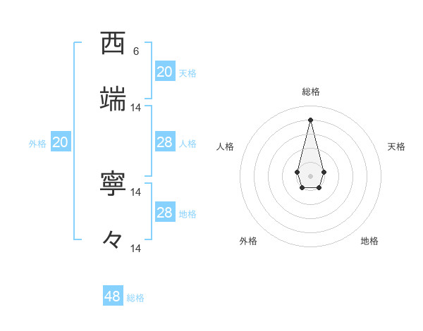 西端 寧々さんの天格は20画の1点!