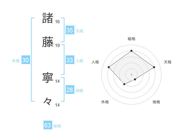 諸藤 寧々さんの総格は63画の4点!