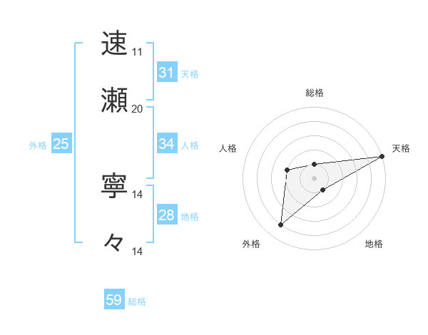 速瀬 寧々さんの天格は31画の5点!