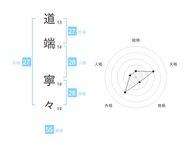 道端 寧々さんの総格は55画の1点!