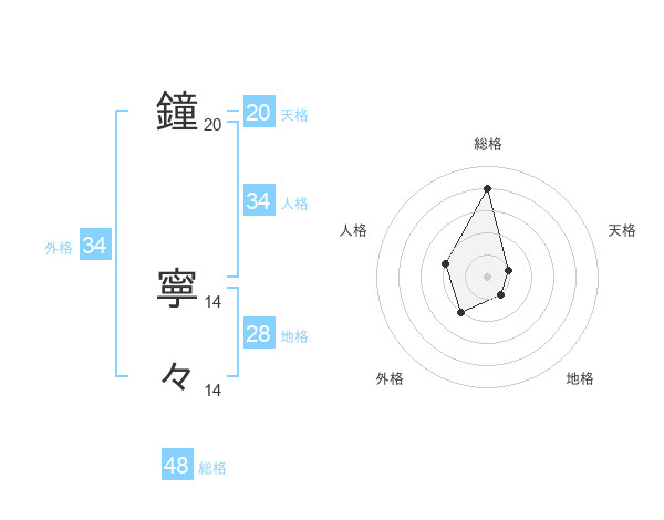 鐘 寧々さんの天格は20画の1点!