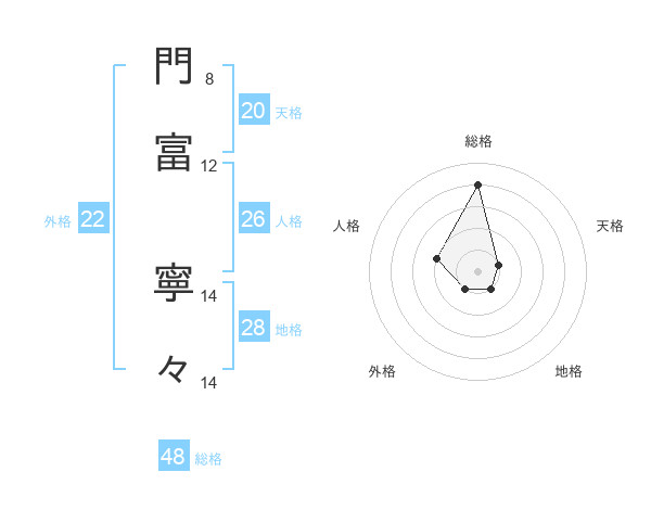 家系が持つ宿命的な運勢を表します。祖先から受け継いだ苗字ですので自分の力が及びません。家柄を象徴します。