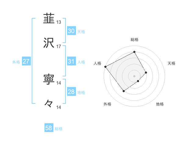 韮沢 寧々さんの総格は58画の4点!