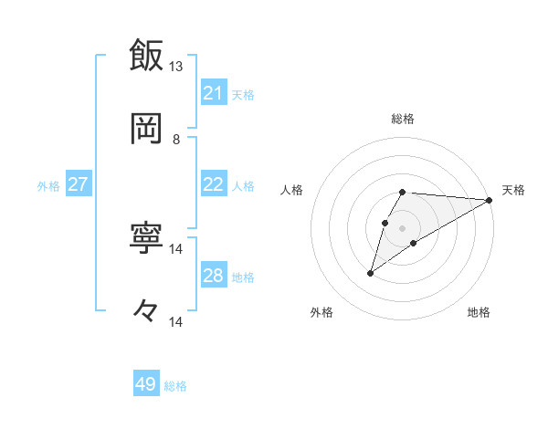 飯岡 寧々さんの総格は49画の2点!
