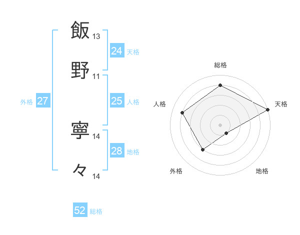 飯野 寧々さんの天格は24画の5点!
