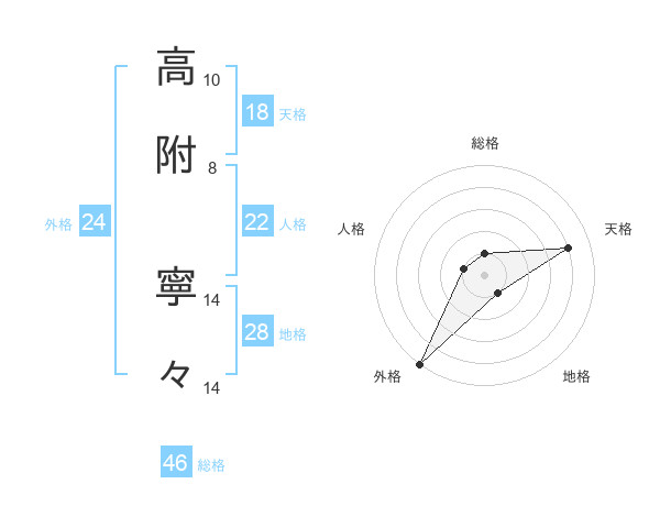 高附 寧々さんの天格は18画の4点!