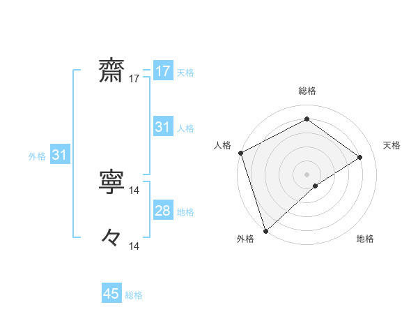 齋 寧々さんの総格は45画の4点!