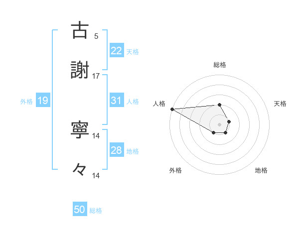 古謝 寧々さんを姓名の画数から五運を鑑定
