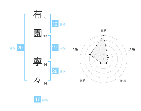 有園 寧々さんの総格は47画の5点!