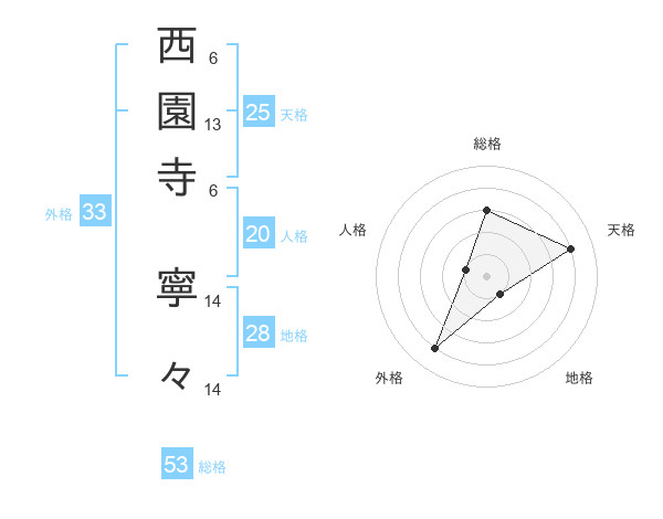 西園寺 寧々さんを姓名の画数から五運を鑑定