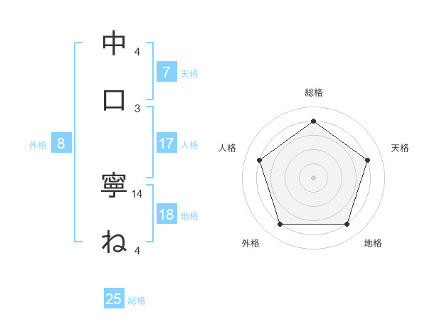 中口 寧ねさんを姓名の画数から五運を鑑定