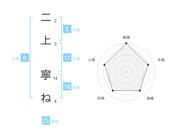 二上 寧ねさんを姓名の画数から五運を鑑定