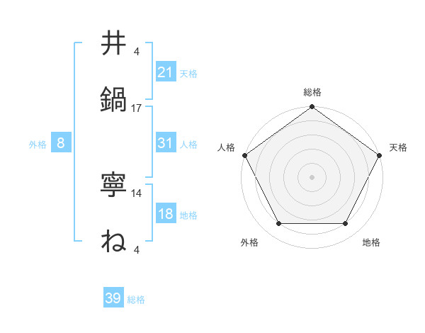 井鍋 寧ねさんの総格は39画の5点!