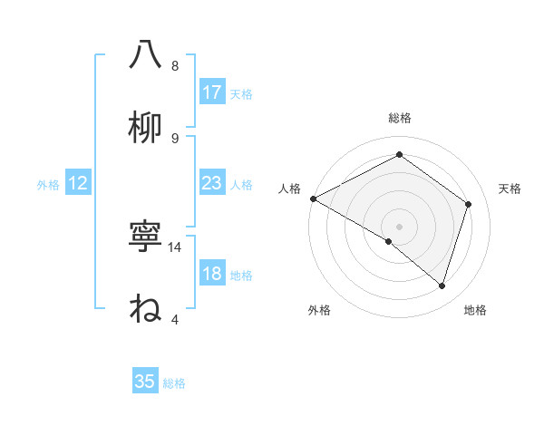 八柳 寧ねさんの総格は35画の4点!