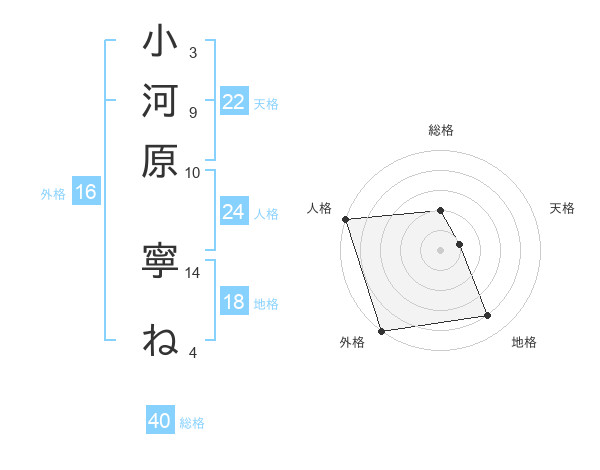 小河原 寧ねさんを姓名の画数から五運を鑑定