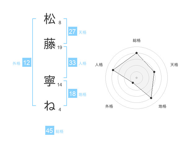 松藤 寧ねさんの総格は45画の4点!