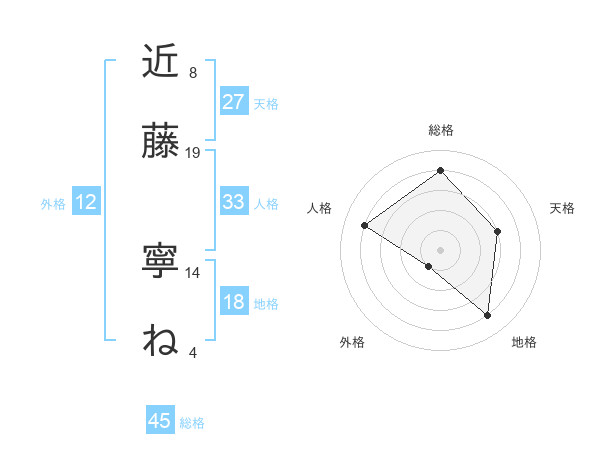 近藤 寧ねさんの総格は45画の4点