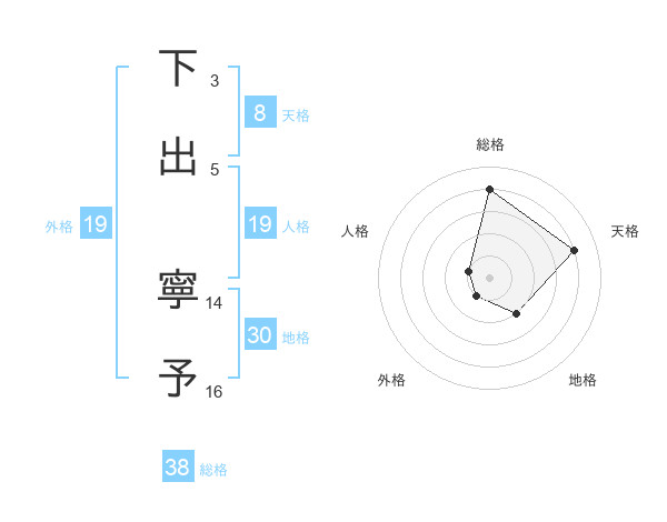 下出 寧予さんの総格は38画の4点!