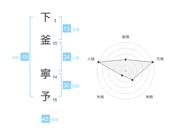 下釜 寧予さんの総格は43画の2点!