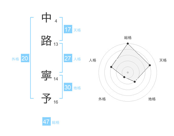 中路 寧予さんの天格は17画の4点!