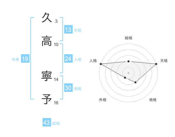 久高 寧予さんの総格は43画の2点!