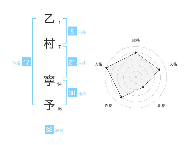 乙村 寧予さんを姓名の画数から五運を鑑定