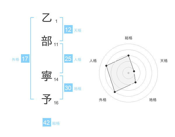 乙部 寧予さんの外格は17画の4点!