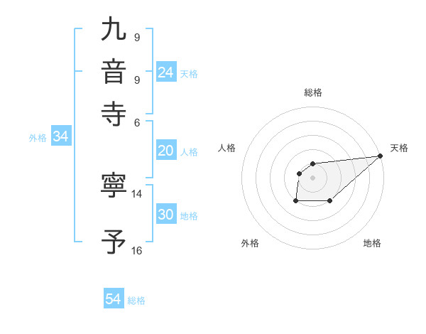 九音寺 寧予さんの総格は54画の1点!