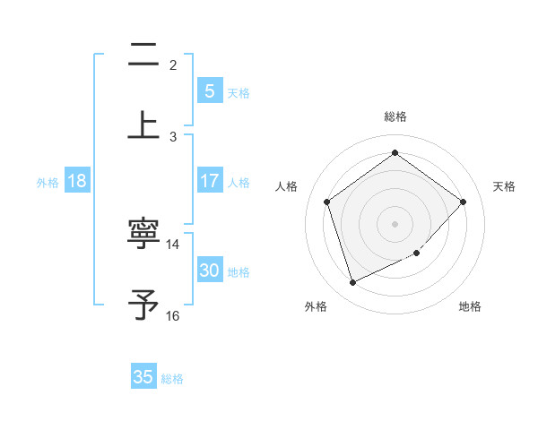 二上 寧予さんの総格は35画の4点!