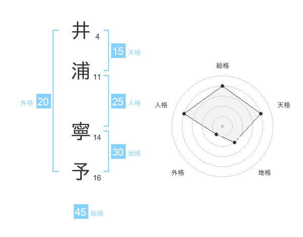 井浦 寧予さんの総格は45画の4点!