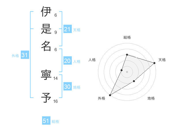 伊是名 寧予さんを姓名の画数から五運を鑑定