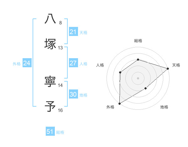 八塚 寧予さんを姓名の画数から五運を鑑定