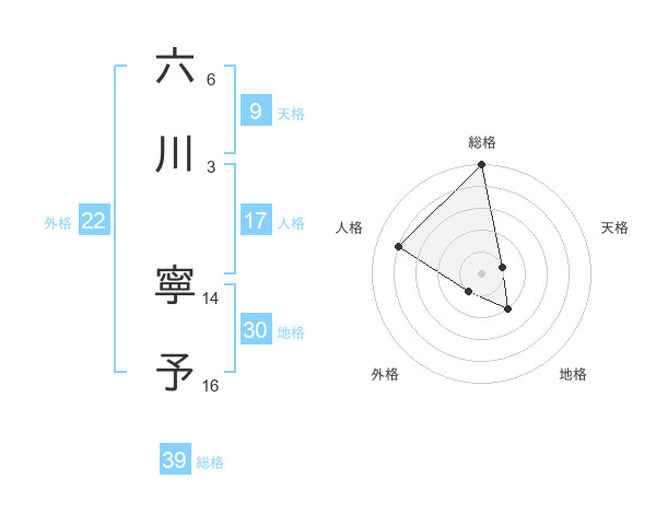六川 寧予さんの総格は39画の5点!