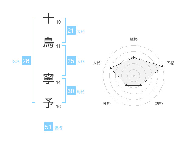 十鳥 寧予さんを姓名の画数から五運を鑑定