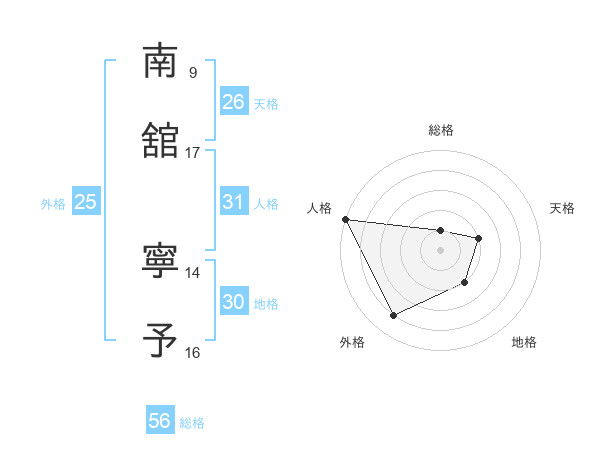 南舘 寧予さんを姓名の画数から五運を鑑定
