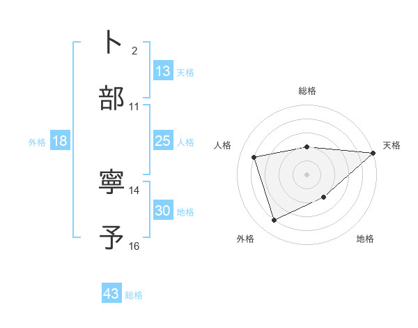 卜部 寧予さんの天格は13画の5点!