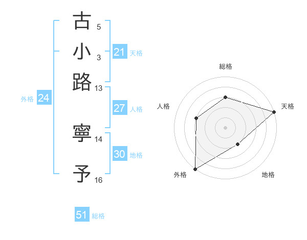 古小路 寧予さんを姓名の画数から五運を鑑定