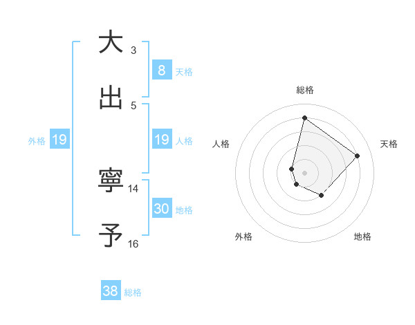 大出 寧予さんの総格は38画の4点!