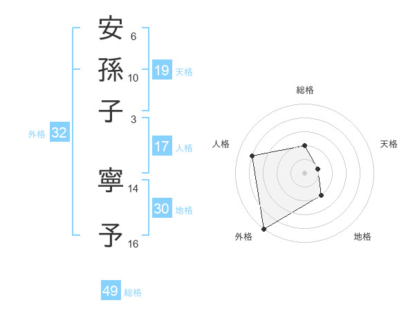 安孫子 寧予さんの外格は32画の5点!